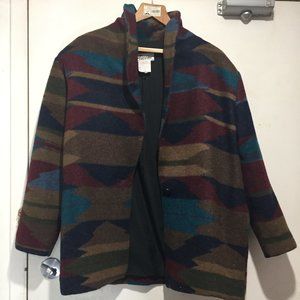 VINTAGE MACCINE LIGHTWEIGHT PRINT WOOL JACKETS SIZE L