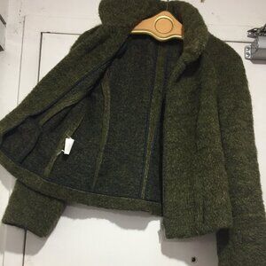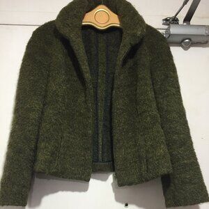 Amuleti Casual, and Comfortable Jacket, Lightweight Size 8, Color Green, 46% Alpaca, 42% Wool, 12% Poliammidica Nylon, Side Pockets, Shoulder Pad, Puff Collar, Closure Zipper, Good Condition, Made in Italy, Relaxed Fit, Great Look, Great Fit.