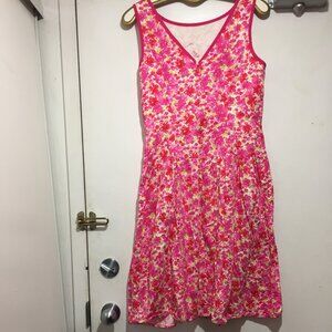 Mica Sleeveless Dress, Lightweight Size 12, Multicolor Floral Print, 100% Cotton, Partial Lining, Closure V-Back Zipper, Hook, Good Condition, Summer Midi Dress, Great Look, Great Fitting.