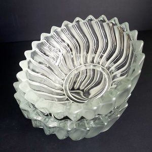 These are two beautiful clear & frosted glass swirl design bowls with zig zag cut edge