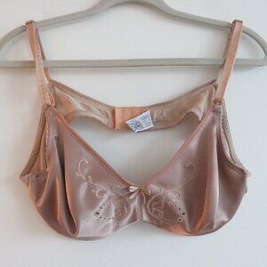 VINTAGE MINIMZER BY LILYETTE Satin Embroidered Bra in Nude Beige - Size 36B