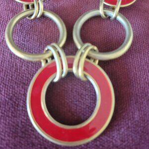 VINTAGE MOD TRIFARI GOLD AND RED ENAMEL LOOPS STATEMENT NECKLACE