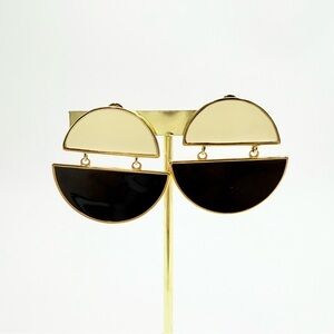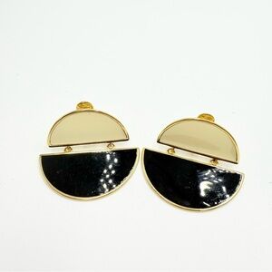 VINTAGE MONET BLACK AND WHITE ENAMEL HALF MOON CLIP-ON EARRINGS