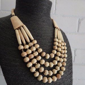 VINTAGE MONIES GERDA LYNGGAARD BUFFALO HORN TRIBAL FOUR STRAND NECKLACE
