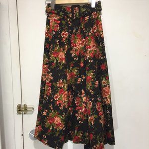 Vintage Multicolor Belted Midi Skirt, No Label Fit Small, Multicolor Floral Print, Material Felt like Wool, Patchwork Swing Skirt, Lining, Closure Back Zipper, and Hooks, in Good Condition, Floral Skirt, Great Look, Great Fitting.