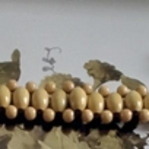 Vintage Mustard Wooden Bead Choker. Suede leather ties with beaded ends. Overall length including ties: 21". VGC. Non smoking home.
