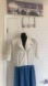 1980’s VINTAGE, Rayon Mix, blue and cream Midi length , short sleeved button down Dress. Dress has medium sized shoulder pads, Elastic waist, Belt loops, but missing original belt. two hidden front pockets see pictures. Made in Canada. Please note that bottom of dress in blue has a slight tie dye look, this is the look of the Fabric. See pics. There is no size indicated, but probably a size 11/12 please see measurements below. Also note there are a couple of small slight stains on the creme material the top right. See pics. Also a stain inside close to shoulder pad, not noticeable