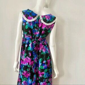 VINTAGE Made in Hawaii Floral Sleeveless Eyelet Ruffle Trim Maxi Dress RN#37359