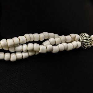 marble, seed bead, beaded, triangle, geometric, shapes, casual, summer, retro, vintage, style, choker, necklace, costume jewelry, white, cream, stone, unique, fun, vacation, outfit