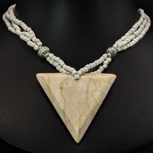 VINTAGE Marble Stone Triangle Pendant with Beaded Necklace