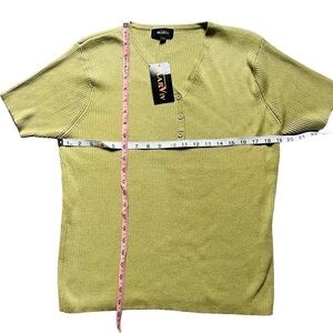 VINTAGE Marviv pullover knit sweater ribbed v-neck cap sleeve chartreuse size L