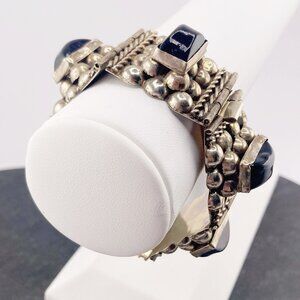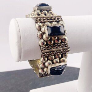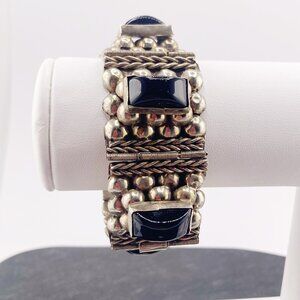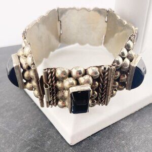 VINTAGE Mexican genuine silver and black plastic cabochon segment bracelet 1950s