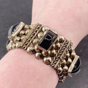This beautiful silver bracelet has a very organic, handmade quality to all of the components, including the settings that the black plastic cabochon "stones" are set in. 🩶🖤😍