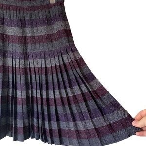 Vintage Mister Leonard Pleated Midi Purple Black Striped Skirt Size 12 (US 4/6) Made In Canada