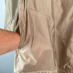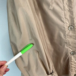 VINTAGE Mulberry Street Tan Nylon Long Trench Coat Hood Pockets Puff Shoulder 8