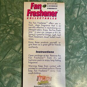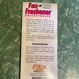 Not sure how long vintage air fresheners hold their scent, but this is still factory sealed NOS (New Old Stock) and features a great cutout of #3 - Dale "The Intimidator" Earnhardt's Monte Carlo. Made in the U.S.A. 1998