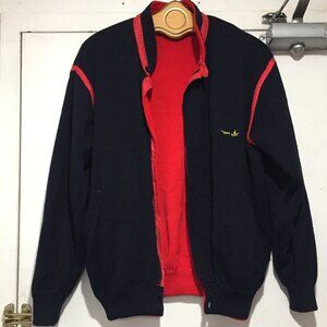 Navigare Unisex Jacket, Lightweight Vintage Size L, Color Red, Blue, 50% Wool, 50% Acrylic, Side Pocket, Embroidery Patchwork Logo, Closure Zipper, Buttons, Zipper Liner Small Spots, in Good Condition, Relaxed Fit, Great Look, Great Fit.