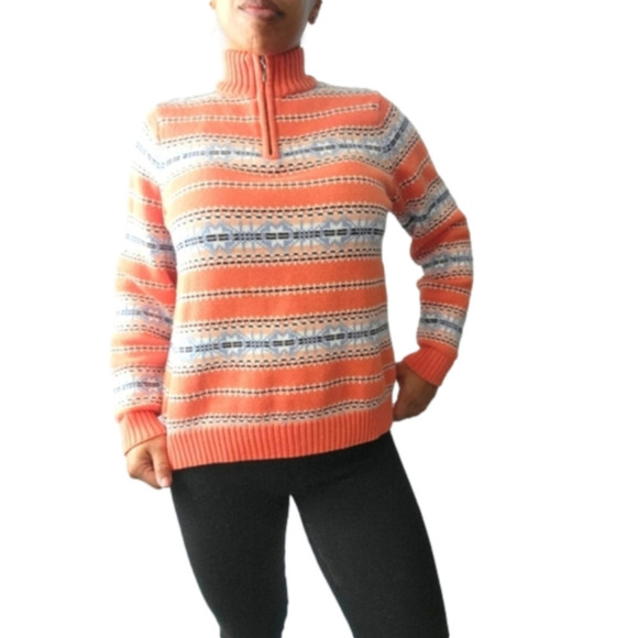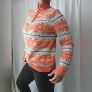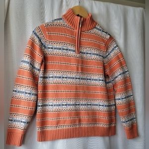 VINTAGE NORTHERN REFLECTIONS Coral Knit Coastal Grandma Fisherman Half Zip