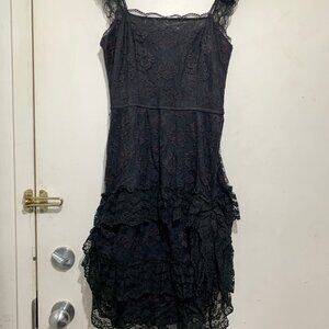 VINTAGE NU-MODE SLIM FIT SLEEVELESS RUFFLE LACE LITTLE BLACK DRESS SIZE S