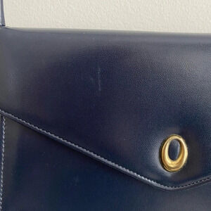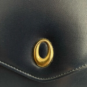 VINTAGE Navy Blue Gold Leather Envelope Purse Clutch