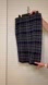 Vintage Y2K Elaine Rose navy midi pencil skirt in a textured windowpane plaid with pale blue, taupe, mocha, and cream.