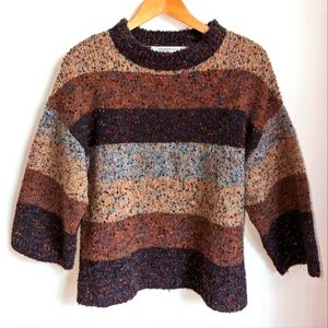 VINTAGE Neutrals Wool Stripes Oversized Boxy Academia Boucle Knit Sweater Small