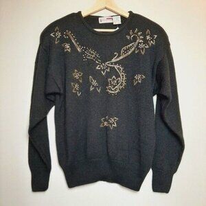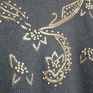 VINTAGE New w Tags Fuzzy Sweater Black Floral Embellished Sz L