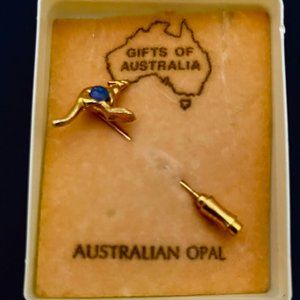 VINTAGE OPAL KANGAROO STICK PIN, Souvenir from Australia Gold Tone, Original Box