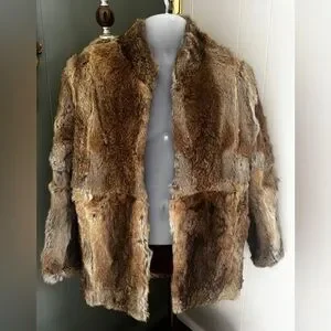 Embrace warmth and style with this VINTAGE brown RABBIT FUR coat. Over Sized Medium. Clasps but looks nicer worn opened.