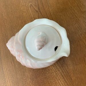 Sugar bowl from Otagiri’s Beachcomber collection. Hand painted pink and white ceramic seashell in good condition. NOTE: **there is a chip on the inside rim of the bowl which is not visible when the cover is in place**