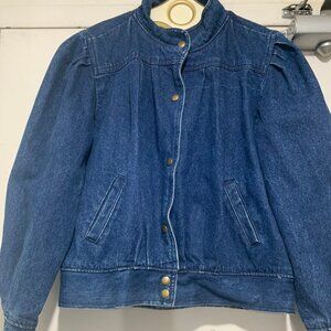 Outerbliss Lightweight Jean Jacket, Vintage Size L, Fits Size S/M, Color Blue Wash, Missing Fabric Tag, Cotton Textured, Side Pocket, Puffy Sleeve, Closure Snap Button Down, Elastic Back Worn Out, in Good Condition, Relaxed Fit, Great Look, Great Fit.
