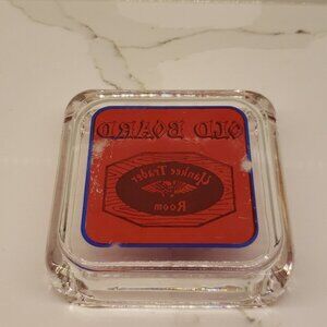 #620 Vintage Old Board Yankee Trader Room Glass Ashtray Red Blue logo 3.5"w x 3.5"l RARE