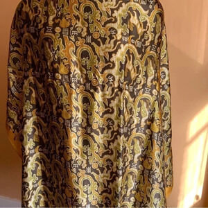 VINTAGE Olive/Gold Square Mulberry Silk Scarf