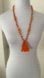 VINTAGE Orange Carved Stone Beads Pendant Long Necklace Statement Boho