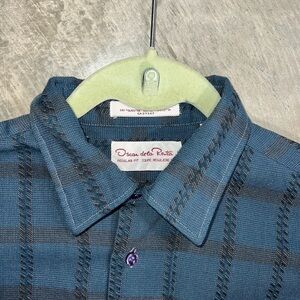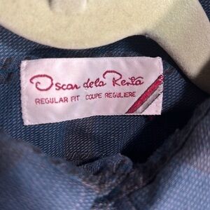 VINTAGE Oscar De La Renta Navy & Maroon Striped Casual Button Down Size Medium
