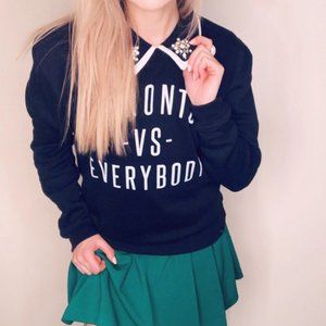 Vintage pleated shift dress with jewelled collar. Please inquire if interested in sweater! Model Height: 5'8 Size: M