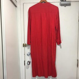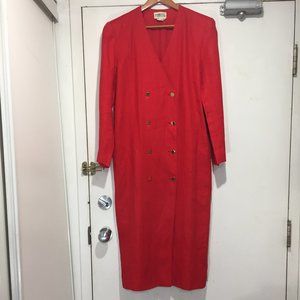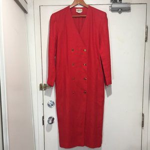 Vintage Ports International Double Breast Maxi Dress, Size 10, Color Red, 100% Linen, Lining, Side Pockets, Shoulder Pads, Back Single Pleat, Closure Buttons, Back Small Repair was Done, and Front Edge Color Fade but it is in Good Condition, Beautiful Thick Linen Dress, Great Look, Great Fitting.