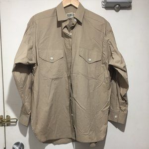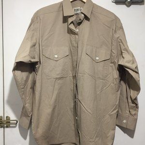 Ports International Single Needle Cotton Shirt, Lightweight Size M, Color Tan, 100% Cotton, Breast Pockets, Shoulder Pads, Big Sleeves, Sides Split, Closure Button Down, Good Condition, Great Casual Shirt, Great Look, Great Fitting.