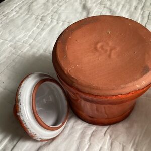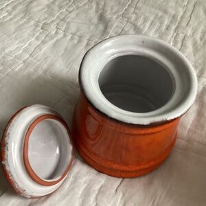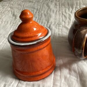 ONE COVERED ORANGE SUGAR BOWL FROM ESTRICERAM (BEAUCEWARE, QUÉBEC) RED CLAY
