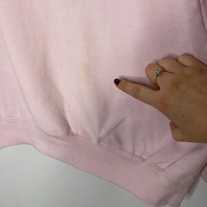 In vintage condition with flaws. 80% cotton 20% polyester. Does have piling and stain please see all the pictures. Sold as it. Cute embroidery on the front. Baby pink color. Measure lay flat: shoulder 21,5'' bust 22'' length 23'' sleeve length 22''. Fit on the smaller size.