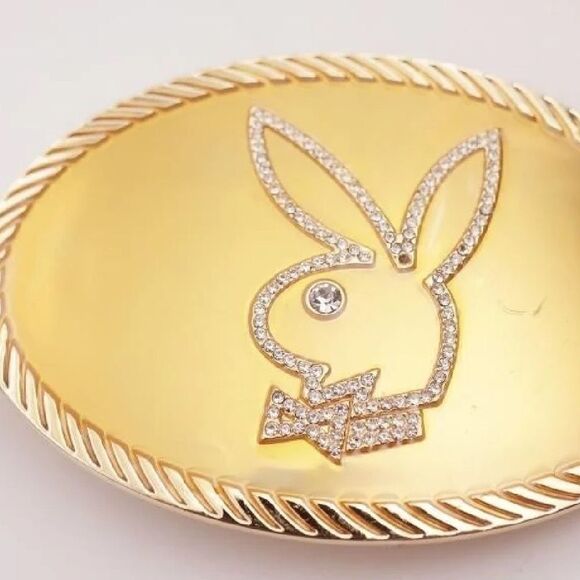 VINTAGE Playboy gold big buckle belt incrusted crystal jewels embellishments bunny head