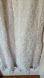 White overlay in sheer nylon, with a modern pattern of velvety raised circles with silver tinsle thread throughout, so this dress sparkles in the sun! the dress is fully lined apart from the sleeves which features a ruffle to match the dresses hem line.