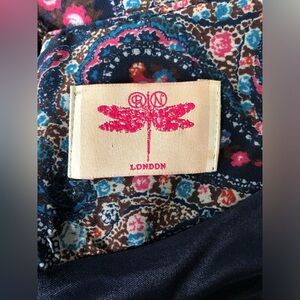 Brown/navy/red/ blues paisley designs