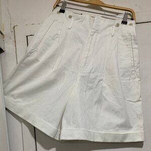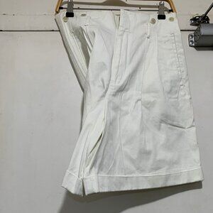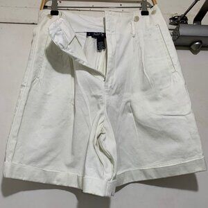 Ralph Lauren Pleated Front Denim Short, Lightweight, Size 8, Waist Size 29, Color White, 100% Cotton, Side Pockets, Back Pockets, High Waist, Closure: Zipper, Hooks, Good Condition, Wide-Leg Cuff Short, Great Look, Great Fit.