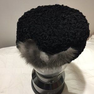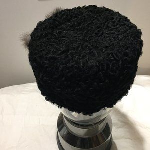 Vintage Real Lamb Fur, and Mink, Black Curly Persian Lamb Pillbox Hat, Small Patch but in Good Condition, it is a Beautiful Hat, Lightweight Size S, Great Look, Great Fitting.