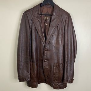 VINTAGE REGENT MTG LTD MENS TWO BUTTON UP 3 POCKET BROWN LEATHER JACKET 40 TALL
