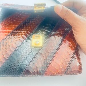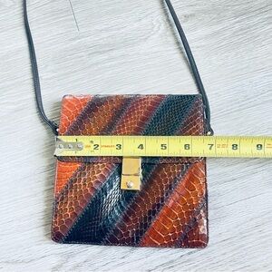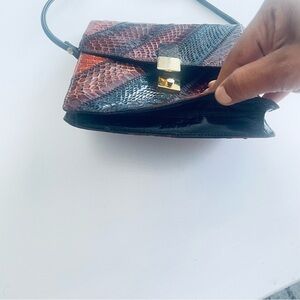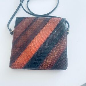 VINTAGE REPTILE LEATTHER BROWN SHOULDER CROSSBODY WOMEN BAG GOLD HARDWARE