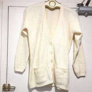 Rino Rossi Hand Framed Cable Knit Cardigan, Lightweight Size M, Color Cream, 70% Wool, 20% Rabbit Hair, 10% Nylon, Front Pockets, Closure Button Down, Good Condition, Relaxed Fit, Great Look, Great Fit.
