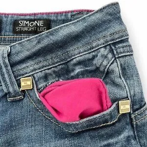 Size 7, fits on the tighter side, low rise, with pink complimentary pockets!
