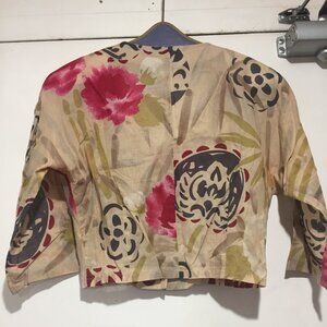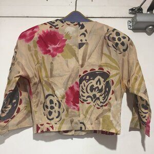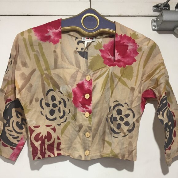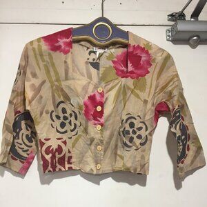Rodier Skirt Set, Lightweight Size 40, Multicolor Print, 100% Cotton, Maxi Swing Skirt, Side Pockets, Closure Side Zipper, Button, Cropped Top, Three-Quarter-Sleeve, Closure Button Down, Good Condition, Made in France, Relaxed Fit, Great Look, Great Fitting.